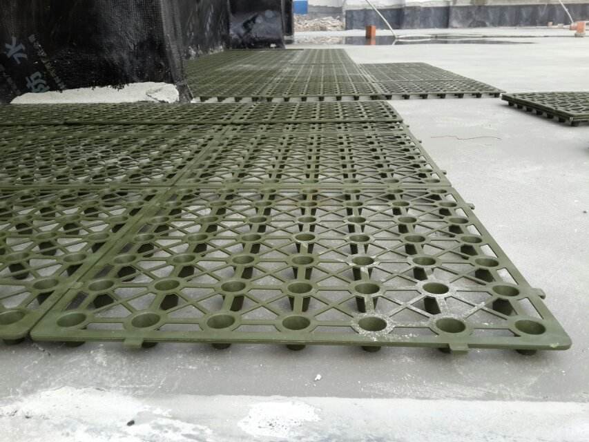 水板又稱隔根排水板、小區綠化排水板、優質排水板,主要是由高密度聚乙烯(HDPE)塑膠底板經過沖壓制成圓錐突臺或者加勁肋的凸點(或中空圓柱形多孔)而成。圓錐突臺的頂面鋪設一層過濾無紡土工布,以阻止泥土微粒通過,也就杜絕排水通道堵塞使孔道排水正常。傳統的排水方法使用磚石瓦塊作為導濾層、使用較多的鵝卵石或碎石作為濾水層、將水排到特指地點。而用排水板取代鵝卵石濾水層來排水則省時、省力又節能、節省投資、還能減低建筑物的荷載。
